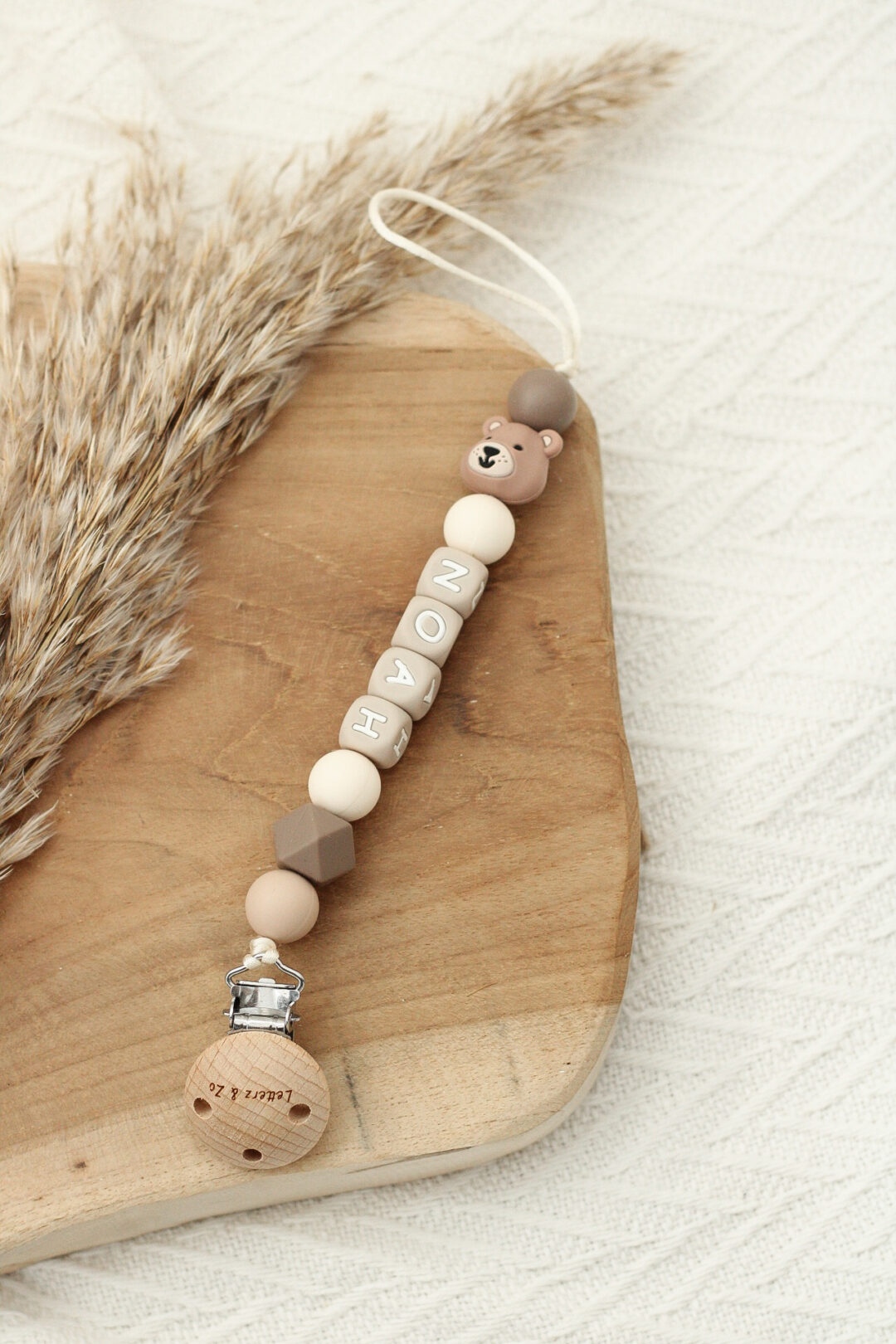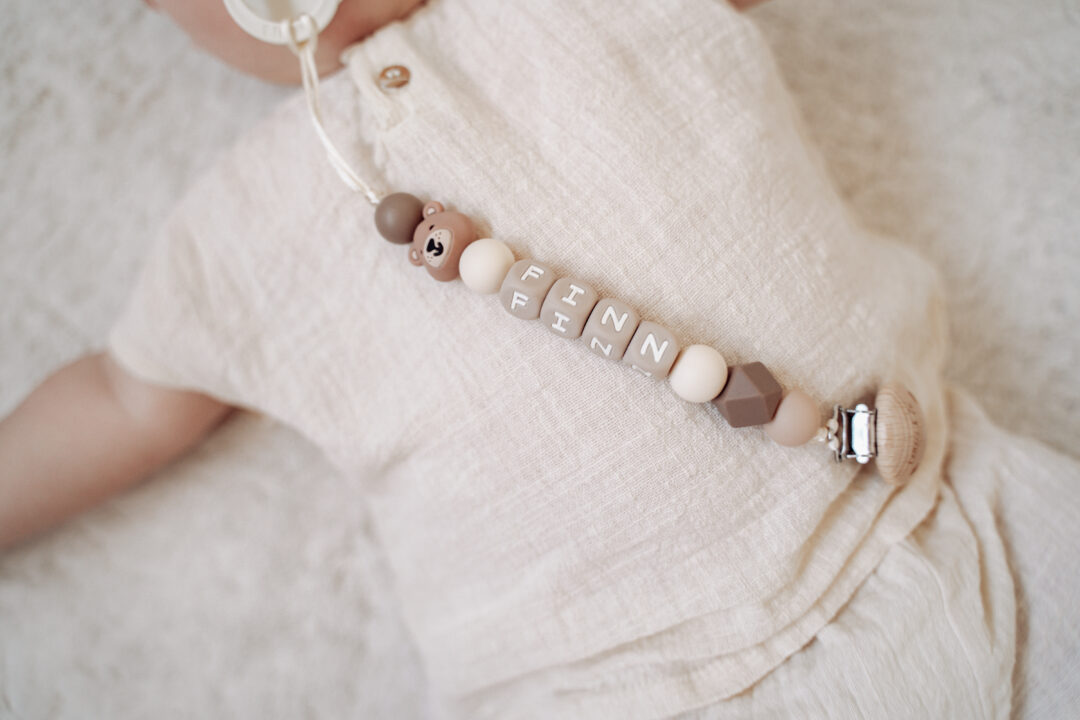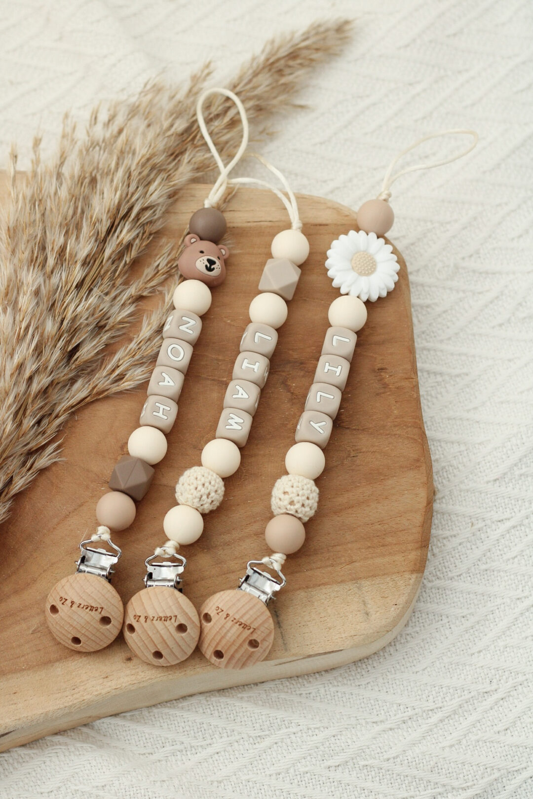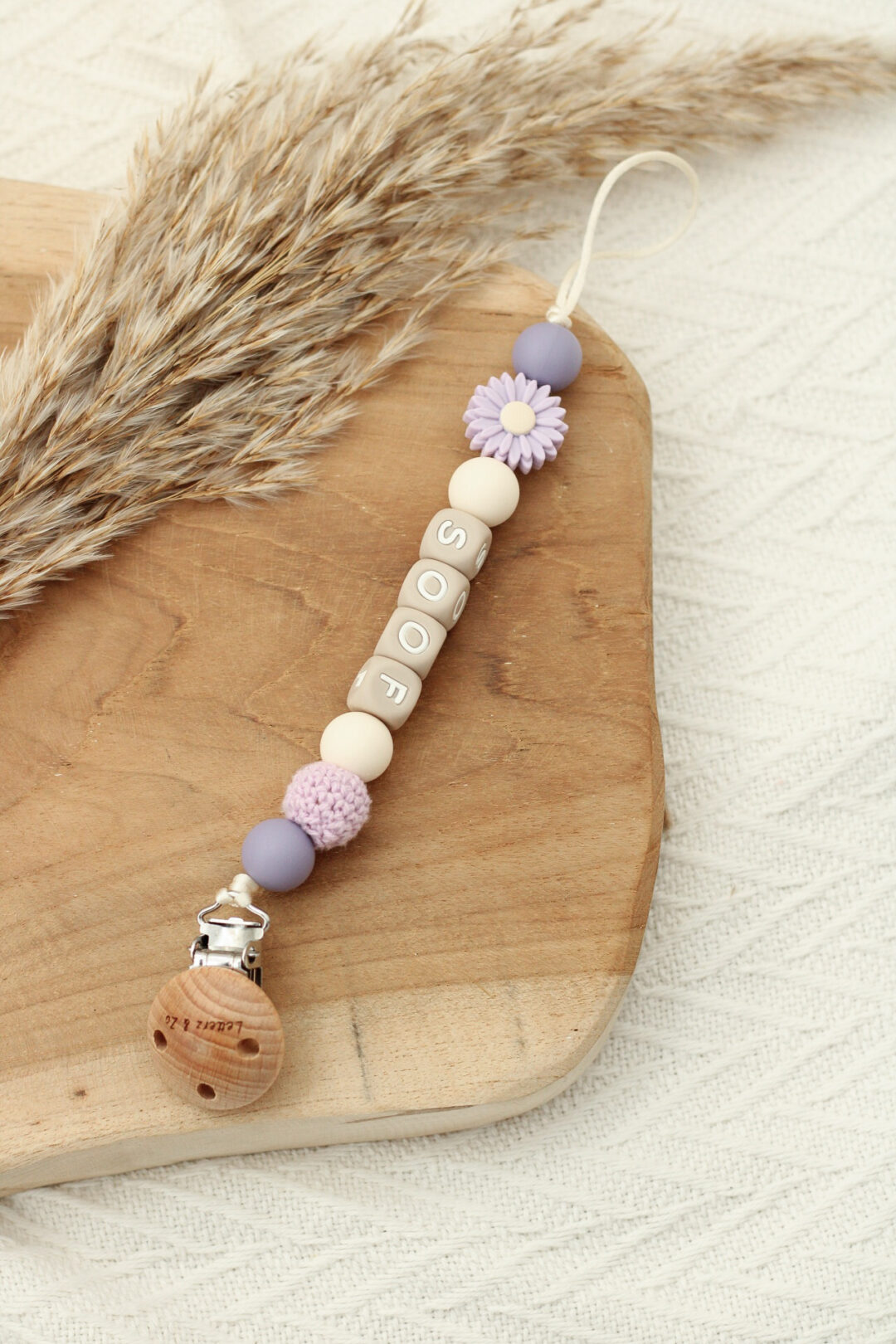 Dit speenkoord met naam is ideaal: het voorkomt dat de speen op de grond valt. Handig voor thuis én onderweg – en superleuk als kraamcadeau!