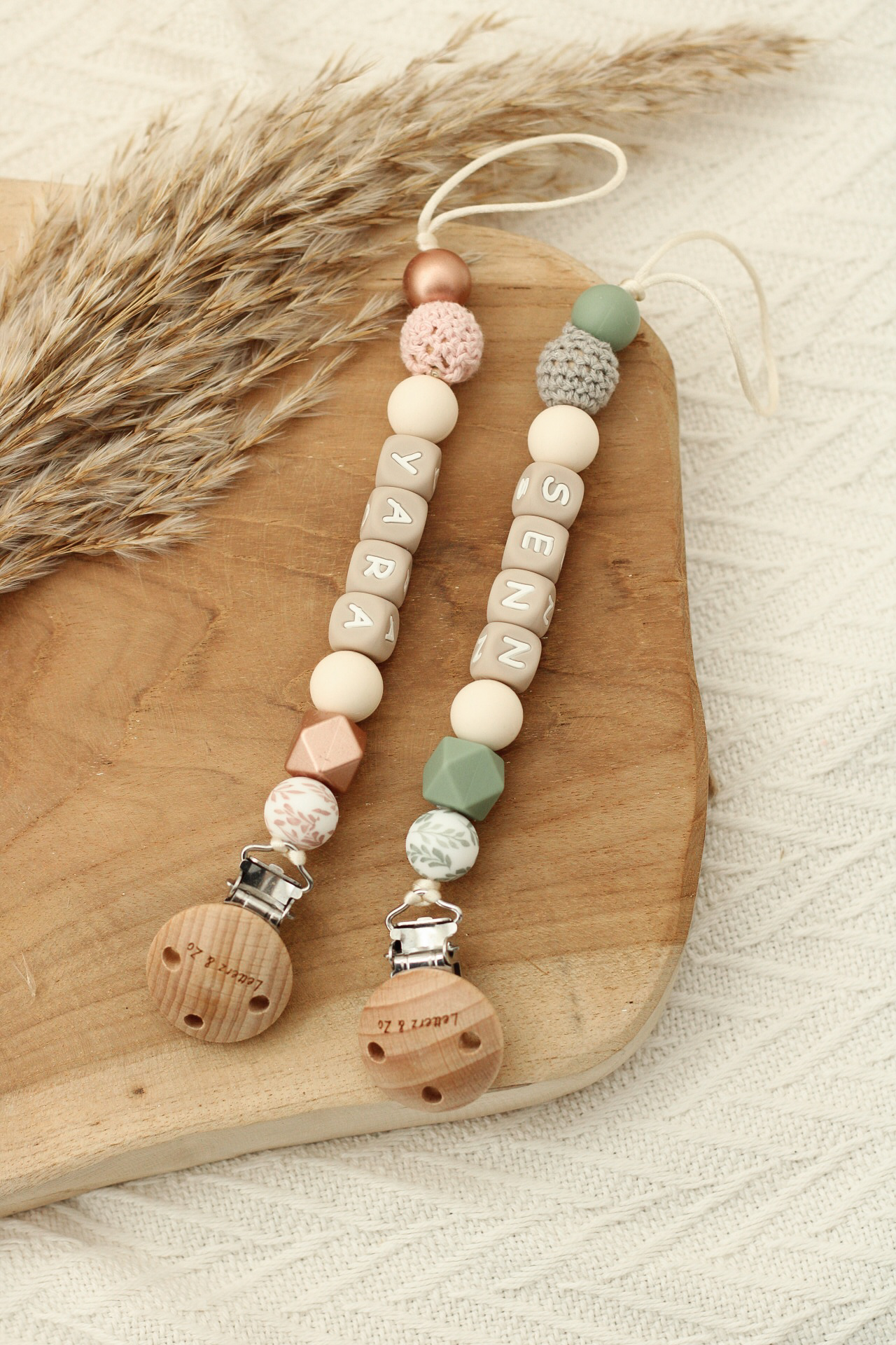 Dit speenkoord met naam is ideaal: het voorkomt dat de speen op de grond valt. Handig voor thuis én onderweg – en superleuk als kraamcadeau!